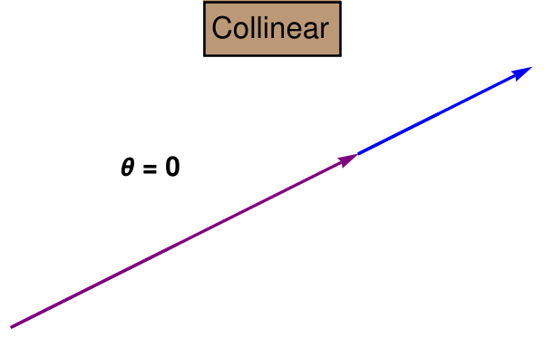 When θ = 0 or π, the cosine of such angle is either +1 or −1. Hence the dot product is reduced to the product of the magnitudes of the two