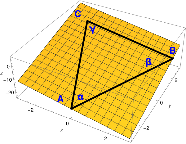 Let A(xa, ya, za), B(xb, yb, zb), and C(xc, yc, zc) be arbitrary points in ℝ³ such that corresponding vectors