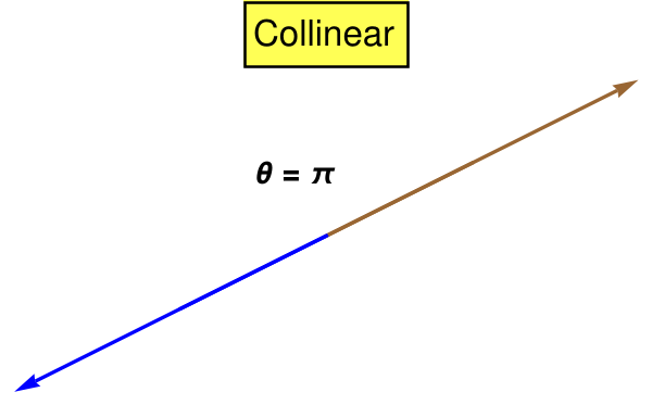 When θ = 0 or π, the cosine of such angle is either +1 or −1. Hence the dot product is reduced to the product of the magnitudes of the two