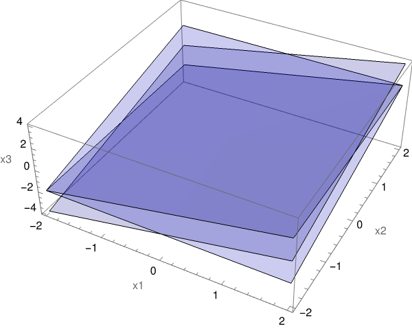 4. Projection of a point in ℝ4 onto the plane. Let x ∈ ℝ4 ≌ ℝ4×1. The projection onto the plane spanned by v₁, v₂ is \[ \mathrm{proj}_{\mathrm P}(\mathbf{x}) = \mathbf{V}\left( \mathbf{V}^{\mathrm T}\mathbf{V}\right)^{-1}\mathbf{V}^{\mathrm T}\mathbf{x}, \] where V = [v₁, v₂]. Mathematica code: